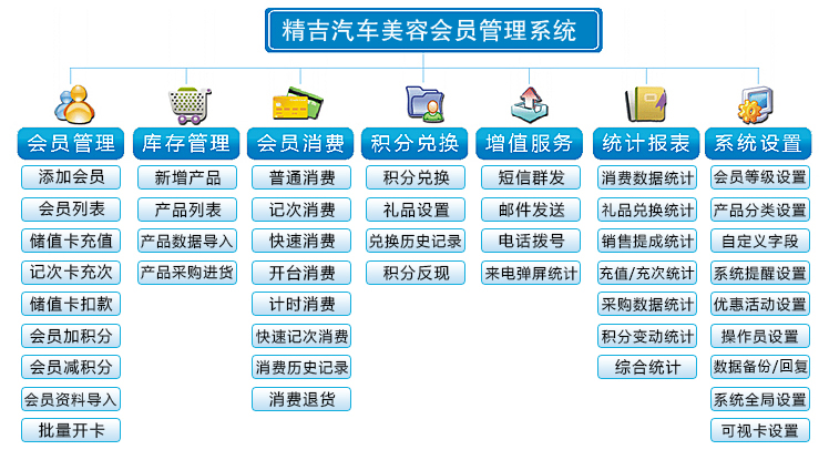 精吉汽車美容管理系統(tǒng)是一款針對洗車店,汽車維修店,4S店,汽車裝潢店,汽車美容店開發(fā)的一款專業(yè)性的管理軟件。它有強大會員管理、會員營銷、庫存管理、消費結(jié)算收銀,能夠支持單店、局域網(wǎng)內(nèi)、互聯(lián)網(wǎng)多臺電腦使用。支持洗車卡記次消費,儲值卡消費,套餐消費,鼓勵老會員介紹新會員,并有積分贈送!更有汽車行業(yè)專屬功能年檢日期提醒、保險到期提醒等,可進行針對性營銷活動,促使有效抓住有價值的客戶!